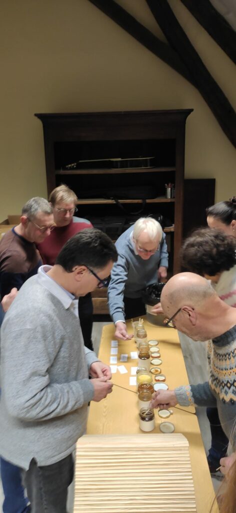 Bien sûr, nous avons terminé notre assemblée statutaire par un moment convivial, où traditionnellement, nos adhérents s’affrontent lors d’un « blind-test » où il faut reconnaître des miels de différents pays et continents. Même pour des spécialistes, il n’est pas toujours facile de reconnaître certains miels exotiques.